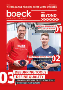 Entdecke das boeck Kundenmagazin – aktuelle Trends, Innovationen und Expertenwissen rund ums Entgraten und die Blechbearbeitung. Bleib informiert – jetzt das boeck Kundenmagazin lesen!